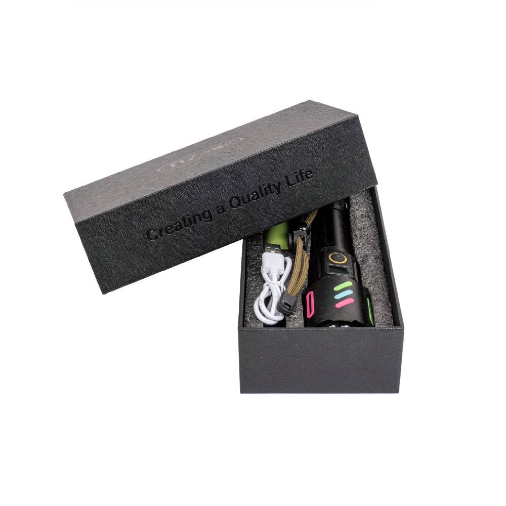 Aceasta dispune de 5 moduri de intensitate a luminii: trei moduri constante (puternic, mediu, redus) și două moduri intermitente, utile pentru alertă sau semnalizare. Încărcarea se face prin USB, ceea ce elimină nevoia de baterii clasice, reducând costurile și inconvenientele.